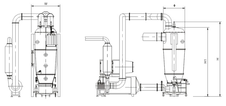 沸騰制粒法是噴霧技術(shù)和流化技術(shù)綜合運(yùn)用的結(jié)果,混合—制粒—干燥在同一密閉容器內(nèi)一次完成,實現(xiàn)一步法制粒,原料粉末在容器內(nèi)建立流化,同時將粘合劑霧滴噴至流化界面成粒,經(jīng)干燥揮發(fā)水份隨排風(fēng)帶出機(jī)外。特點
