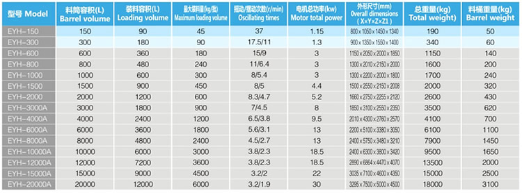EYH系列二維運動混合機主要由轉(zhuǎn)筒、擺動架、機架三大部分構(gòu)成。轉(zhuǎn)筒裝在擺動架上,由四個滾輪支撐并由兩個擋輪對其進行軸向定位。在四個支撐滾輪中,其中兩個傳動輪由轉(zhuǎn)動動力系統(tǒng)拖動使轉(zhuǎn)筒產(chǎn)生轉(zhuǎn)動;擺動架由一組曲柄擺桿機構(gòu)來驅(qū)動,曲柄擺桿機構(gòu)裝在機架上,擺動架由軸承組件支撐在機架上。特點