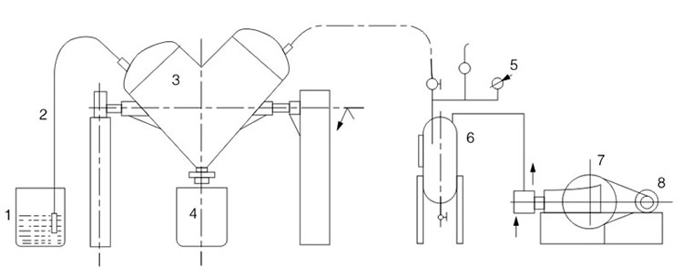 本機(jī)適用于制藥、化工、食品等行業(yè)兩種以上千粉狀、顆粒狀物料的混和。結(jié)構(gòu)示意圖
